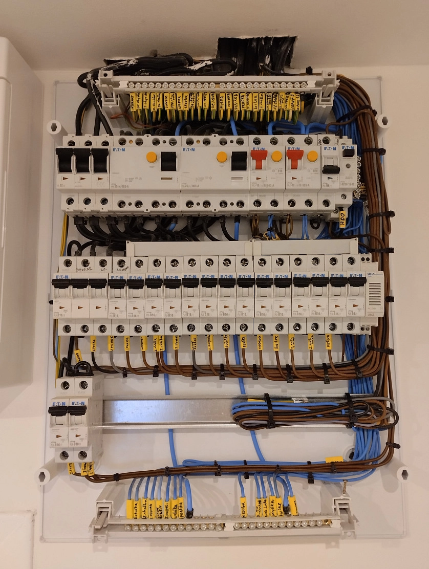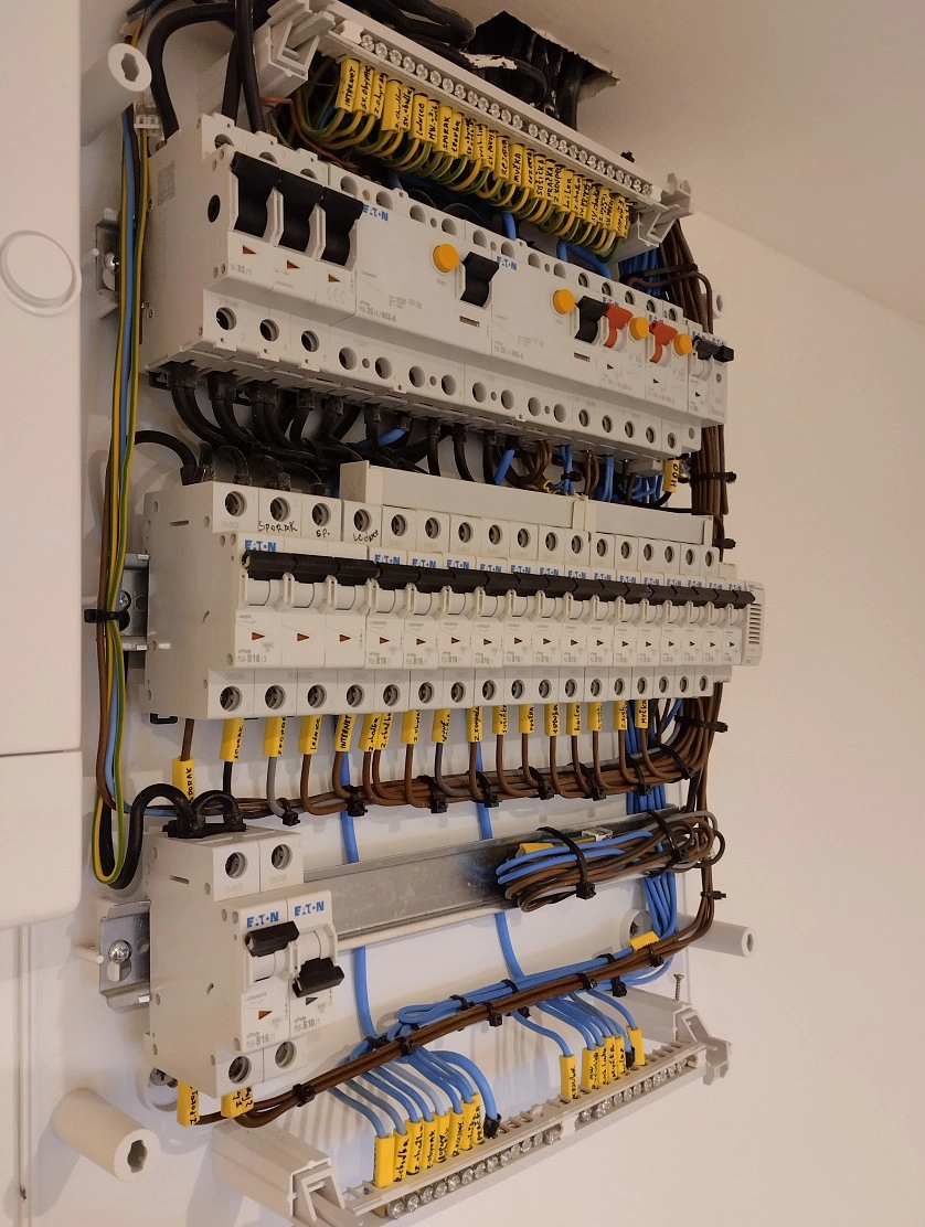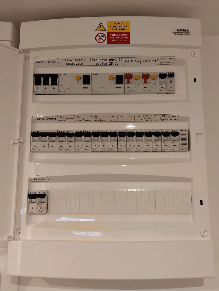 Kompletace bytového 3-fázového rozvaděče, Praha.